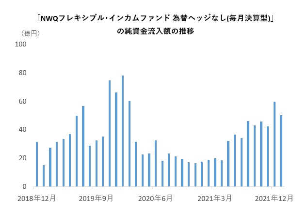 三井住友トラスト・アセットマネジメントが運用する「NWQフレキシブル・インカムファンド」の「為替ヘッジなし(毎月決算型)」と「為替ヘッジなし(年1回決算型)」が、22年1月末時点のファンドレーティングで最上位の5ツ星(★★★★★)となった。ともに前月の4ツ星から上昇し、付与開始から2カ月目で5ツ星を獲得した。 ウエルスアドバイザーでは、運用期間3年以上のファンドを対象に、毎月レーティングを公表している。レーティングは、ファンドのリスク調整後リターンが、その属するカテゴリーの中でどの水準にあるのかを5段階で示したもので、最上位の5ツ星は相対的な運用効率に優れていることを示す。 「NWQフレキシブル・インカムファンド」は、外国籍ファンドへの投資を通じて、日本を含む世界の企業が発行する米ドル建の株式、投資適格社債、ハイイールド社債、転換社債、ハイブリッド証券などに分散投資するバランス型ファンド。相対的に高いインカム収益と値上がり益の獲得を目指す。外国籍ファンドの運用は、米国のヌビーン・アセット・マネジメント・エルエルシーが手掛ける。 外国籍ファンドのポートフォリオはボトムアップ・アプローチによって構築される。収益性、成長性、財務の健全性などの分析から魅力度が高いと判断した企業を選定した後、当該企業が発行する証券の中から、利回りや価格上昇余地などの点から見て投資効率が高いと判断した証券(リスク調整後の期待リターンが高い証券)を選択する。 21年12月末時点のポートフォリオの組入銘柄数は187、利回りは3.73%。資産の内訳は、ハイイールド社債35.35%、投資適格社債22.26%、優先株式16.96%、転換社債11.47%、普通株式11.07%。相対的に高いインカムと景気回復局面での値上がり期待からハイイールド社債を高位で組み入れている。22年1月26日付の販売用資料「2021年の振り返りと今後の運用方針」によると、2022年については、良好な資金調達環境や消費者の需要回復などに支えられて米国企業業績は堅調に推移し、米利上げについても、巡航速度であれば大きな波乱要因にはならないと想定。緩やかな金利上昇が見込まれる環境下において、価格上昇と相対的に高い利回りが期待されるハイイールド社債や優先株式に積極的に投資する方針を示している。 「為替ヘッジなし(毎月決算型)」、「為替ヘッジなし(年1回決算型)」の両ファンドともに、設定(18年12月)から21年1月まで38カ月連続で純資金流入となっている。相対的に高い利回りを求める投資家からの支持が続いている。 「為替ヘッジなし(毎月決算型)」は今月10日発表の「ファンド オブ ザ イヤー2021」において、「バランス型 部門」の「優秀ファンド賞」を受賞した。22年1月末時点の過去3年間のトータルリターン(年率)は6.40%とカテゴリー「安定」平均を4.02%上回り、カテゴリー内上位4%(131本中5位)となっている。