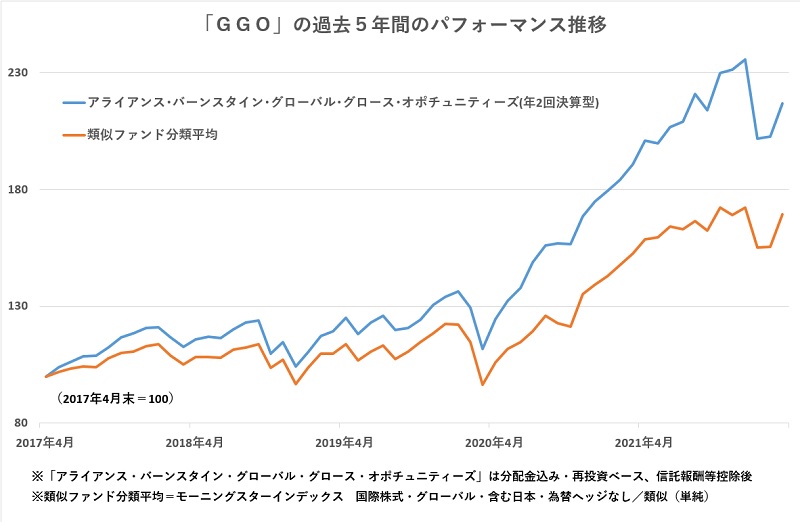 アライアンス・バーンスタインが設定・運用する「アライアンス・バーンスタイン・グローバル・グロース・オポチュニティーズ(年2回決算型)『愛称:GGO』」は、2021年のトータルリターンが34.87%となり、類似ファンド分類(国際株式・グローバル・含む日本・為替ヘッジなし)平均を11.21%上回った。また、2021年12月末時点における過去5年間のシャープレシオは1.31と、類似ファンド分類内に属するESGアクティブファンド内では13本中第1位の極めて優れた運用の効率性となった。ファンド オブ ザ イヤー2021「ESG型」部門で優秀ファンド賞を受賞した。同ファンドの「ESGの視点」と成長株投資の両立について同社執行役員運用戦略部長の岡田章昌氏に聞いた。 ――ファンドの特徴は? 「GGO」は、「グローバル」(世界)の「グロース」(高い成長が期待される)、「オポチュニティーズ」(投資機会)を捉える成長株アクティブファンドです。世界の高い成長が期待される投資機会を捉えるために、世界経済の長期的な成長テーマを発掘するとともに、その成長テーマを追い風に、しっかりと利益を出すことができる成長企業に投資を行っています。 このため、運用チームは、国・地域や業種セクターにとらわれず、10年単位で持続的な成長が見込まれる投資領域を見出すことに注力しており、その中から徹底した企業調査により、魅力的な成長企業に厳選投資しています。 ――ESG視点のコンセプトは? 当ファンドでは、投資企業の利益成長の持続性を重視しており、その持続性を評価する上で、ESGの視点が欠かせないと考えています。 このため、二つの視点でESG視点を活用しています。第1に、成長領域を見出すためのESG視点の活用です。投資企業の持続的な利益成長を可能とする事業分野を見つけるために、国連の持続可能な開発目標(SDGs)が創出するビジネス機会に注目し、今後拡大が期待される成長領域の道しるベとして活用しています。 当ファンドでは、SDGsを2020年代最大の成長機会と捉え、SDGsの達成に貢献する製品サービスを提供している企業を投資対象ユニバースにしており、銘柄調査の初期段階からSDGsを取り入れESGの視点として活用しています。 第2に、企業評価をするためのESG視点の活用です。企業の持続的な利益成長のためには、企業経営も持続性を高めていくことが必要であり、ESG課題への対応が企業評価に大きな影響を与えるようになっています。このため、企業経営の持続性を見極める上で、企業ごとにESG課題を特定し、ESG評価を銘柄選定プロセスの中に組み込んでいます。 このように、当ファンドでは、持続的な成長機会を捉えるトップダウンの視点としてSDGsを活用するとともに、企業経営の持続性を評価するボトムアップの視点として、ESGを活用し、トップダウンとボトムアップを融合した運用リサーチを行っていることに特徴があります。 また、ESG評価については、アライアンス・バーンスタインの株式部門においてチーム横断的に、銘柄分析の情報共有を行っており、また、債券運用チームとも部門横断的な意見交換を行うことを可能とするなど、多種多様な視点から企業のESG課題を分析しています。 ――運用開始から20年余りが経過しています。これまでの振り返りと運用実績について教えてください。 運用開始から20年強となり、企業活動のグローバル化や多角化に伴い、当ファンドが成長企業を発掘するために注目する投資機会も時代とともに変化してまいりました。2017年4月からは、SDGsを銘柄調査の視点として本格的に導入しており、この3月末で丸5年となりますが、市場指数を上回る良好な運用パフォーマンスを実現しています。 この背景には、持続可能な社会の実現に貢献するテクノロジー企業やヘルスケア企業などの成長銘柄が長期的な成長期待を背景に株価が大きく上昇してきたことが要因となっています。 さらに当ファンドでは、利益成長に対する株価の割高割安を考慮に入れた銘柄入れ替えを実施しており、中長期的に良好なパフォーマンスを実現できている要因になっています。 ――最後に投資家の方々にメッセージをお願いします。 当ファンドは、SDGsやESGの視点を取り入れた成長株投資により社会的課題解決に貢献するとともに、持続的成長企業への厳選投資により運用リターンを同時に追求するアクティブファンドです。すなわち、SDGsに貢献する成長企業への厳選投資を通じ、社会、企業、投資家の皆様の3者の利益を同時に追求する「三方よし」のファンドと自負しております。 また、時代とともに変化するグローバルな投資機会を捉えることにより、お客様の長期グローバル分散投資に長くお付き合いいただける運用を継続し、お客様の長期の財産形成にお役に立てたらと考えております。今後とも「GGO」をよろしくお願い申し上げます。(グラフは「GGO」の過去5年間のパフォーマンス推移)
