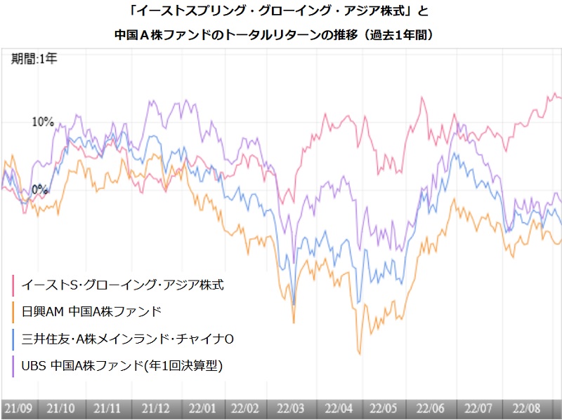 中国を「高い成長が期待できる新興国市場」というポジティブな見方をする人は、ほとんどいなくなってしまったようだ。むしろ、米中貿易摩擦で米国と対立し、外交ではウクライナに侵攻したロシアと親しいために西側諸国との間に溝があり、さらに国内においては、不動産不況を抱える中で、「ゼロコロナ政策」の徹底によって未だにロックダウン(都市封鎖)を繰り返し経済的な停滞にあえいでいるというネガティブな印象が強い国になってしまっている。ところが、中国現地で調査活動を行っているイーストスプリング・インベストメント・マネジメント(上海)カンパニー・リミテッドの株式運用部門ヘッドであるMichell Qi氏は、このほど「中国A株市場:回復局面に向けて」と題したレポートを発表し、「今年後半に向け、中国A株(人民元建ての中国本土株式)には、説得力のあるポジティブな材料がある」としている。 Qi氏が注目を促すのは、「中国はインフレが抑制されているため、資金調達コストは低く抑えられ、利上げが行われている他の多くの国とは対照的な状況にある」ということ。さらに、「中国は世界がインフレと商品価格の上昇の最中にある中、新興国では珍しく経常黒字を維持している」にもかかわらず、中国市場への評価は高くないと注意を促している。「上海、または、深セン証券取引所上場のA株の主要銘柄で構成されるCSI300指数は、(バリュエーション水準が)過去の平均値付近で推移しており、上昇余地を残し魅力的な水準にある」とする。 この中国A株の現在の株価の水準を理解するため、イーストスプリング・インベストメンツが設定・運用するファンド「イーストスプリング・グローイング・アジア株式」と、中国A株を主要な投資対象とする代表的な中国A株ファンド(「日興AM 中国A株ファンド」「三井住友・A株メインランド・チャイナ・オープン」「UBS中国A株ファンド」)の過去1年間のトータルリターンの推移をみた。「イーストスプリング・グローイング・アジア株式」は日本を除くアジア地域の株式を投資対象とし、中国とインドの株式に45%、ASEAN地域の株式に55%という基本投資割合で投資するファンドだ。このファンドが8月末現在で1年間のトータルリターンが15.3%であることに対し、中国A株に投資するファンドは、「日興AM 中国A株ファンド」がマイナス9.41%、「三井住友・A株メインランド・チャイナ・オープン」がマイナス3.67%、「UBS中国A株ファンド」がプラス0.01%となっている。 中国を除くアジアの国々は、新型コロナウイルスの感染を抑制しつつ経済の再開を進めているが、中国だけは頑なに「ゼロコロナ」というコロナ感染の封じ込めを優先しているという経済状況の違いが、株価にも表れているように見える。Qi氏はレポートで、「中国経済の回復は、不動産セクターと中国政府の『ゼロコロナ』政策の行方に大きく依存する」と見通している。Qi氏が中国A株市場に期待が持てるのは、この2つの懸念材料が良い方向に向かって動いていると考えられるためだ。 まず、不動産セクターについては、現在、中国全土で住宅購入者が住宅ローンの支払いを拒否し、93都市の300以上の不動産プロジェクトが影響を受けている。この住宅ローンの支払い拒否の総額は、中国の大手銀行14行の住宅ローン融資残高の約3%を占める規模になっている。現在、中国政府は不動産開発業者の流動性問題を支援するため、最大440億米ドル規模の不動産ファンドを立ち上げる計画を進めている。Qi氏は、この問題について「住宅購入者が住宅ローンを支払えないことよりも、不動産開発業者が不動産プロジェクトを遂行できないのではという懸念が住宅購入者の間に広がったことが引き金になったことに注目している」という。このため、中国政府の不動産ファンドの設立に向けた動きは正しい対応といえ、今後、不動産市場の正常化に向けた対策も期待できるとしている。その上で、「中国の住宅市場は2022年第3四半期に底を打ち、第4四半期、または、2023年第1四半期には本格的な回復に向かう」と見通している。 一方、中国政府の「ゼロコロナ」政策については、「検疫要件や中国への渡航制限に関する最近の緩やかな緩和、検査頻度の低下は、中国政府が新型コロナウイルスの感染状況に応じて柔軟にその対応を調整する姿勢があることを示唆している」とし、「中国は感染症の発生をより積極的に監視することで、本年4−5月に見られたような混乱を避けることができると考えている」という。このことによって、中国A株市場に期待できる環境が整ってきたとみている。 そのうえで、「中国A株市場は、H株市場と比較した場合、構成銘柄のセクターが製造業に傾斜した市場であり、現在、中国政府がグリーン・イニシャティブ(気候変動対策)、テクノロジー自給率向上、自動化、デジタル化を通じて自国の製造業の発展に注力していることから恩恵を受ける」とし、「電気自動車(EV)やバッテリーのサプライチ