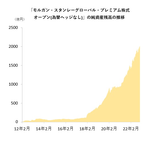 三菱UFJ国際投信の「モルガン・スタンレーグローバル・プレミアム株式オープン(為替ヘッジなし)」(M・Sグローバル・プレミアム株式(H無))の純資産残高が13日に2000億円に到達(2009億円)した。2012年2月の設定から2021年3月の1000億円到達までに9年1カ月余りを要したのに対し、1000億円から1年8カ月余りで2000億円に到達した。 同ファンドは、世界の企業の中から「プレミアム企業」20〜40社の株式に厳選して投資する。「プレミアム企業」とは、高いブランド力、有力な特許、強固な販売網などに支えられた高い競争力を背景に持続的な利益成長が期待される企業を指す。実質的な運用は、モルガン・スタンレー・インベストメント・マネジメントの欧州拠点である英ロンドンのモルガン・スタンレー・インベストメント・マネジメント・リミテッドが手掛ける。 2022年10月末時点のポートフォリオの組入銘柄は33銘柄。組入上位国・地域は米国73.4%、英国9.5%、フランス6.6%、組入上位業種は情報技術34.0%、生活必需品25.0%、ヘルスケア22.1%、組入上位銘柄は、米『マイクロソフト』8.6%、米『フィリップ・モリス・インターナショナル』(7.2%)、米『ビザ』(6.5%)となっている。 同ファンドが投資するプレミアム企業は、高いブランド力や強固な販売網などを背景に高い価格決定力を有し、継続的な売上の獲得が見込まれるため、景気動向に左右されにくいという特徴を有する。プレミアム企業の安定感を背景に同ファンドはリスクを抑制した運用を行っており、特に市場の下落局面において強さを発揮している。 2022年11月末時点の過去10年間のリスク(標準偏差)は14.42%とカテゴリー「国際株式・グローバル・除く日本(為替ヘッジなし)」平均を4.19%下回り、カテゴリー87本中第2位。リスクに見合ったリターンを獲得しているかを見る指標であるシャープレシオは、同月末時点の過去10年間で0.98とカテゴリー平均を0.23上回り、カテゴリー内トップとなっている。