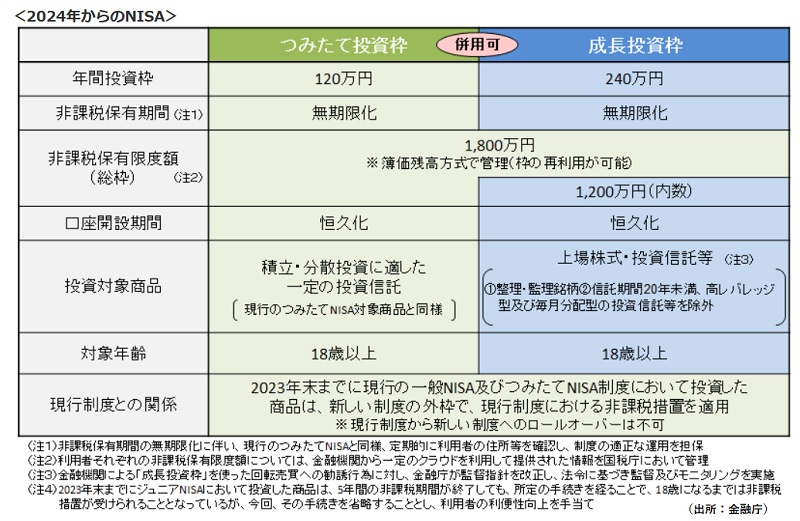 令和5年度税制改正の大綱等において、2024年以降のNISA(少額投資非課税制度)の抜本的拡充・恒久化の方針が示された。新しいNISAは、年間投資枠120万円の「つみたて投資枠」と同240万円の「成長投資枠」が設けられ、この2つの枠は併用が可能だ。非課税保有限度額(総枠)は1800万円に拡充され、簿価残高方式で管理することによって枠の再利用も可能になっている。2023年末までは、現行の一般NISA、つみたてNISAが存続し、その枠で投資された資金は新しい制度の外枠で現行制度の非課税措置を適用する(現行制度から新しい制度へのロールオーバーは不可)。投資対象商品は、「つみたて投資枠」は現行のつみたてNISAの対象商品に限定。そして、「成長投資枠」では整理・管理銘柄を除く上場株式と信託期間20年未満及び高レバレッジ型及び毎月分配型を除く投資信託になっている。 従来と比べて利便性が格段と良くなり、非課税枠も拡大し、制度が恒久化したことによって「投資による資産形成の時代」を築くための制度的な枠組みはできたといえるのではないだろうか。特に、「成長投資枠」の対象商品から毎月分配型ファンドが除外されたことに制度の性格が表れているように感じる。毎月分配型ファンドは、投資成果に関わらず一定の分配金を払い出すことをめざす商品で、どちらかといえば「年金の補完」というような資産活用を行う層のための商品だ。根強いニーズに支えられた商品群であるが、毎月分配をめざすために投資元本も取り崩して分配することもあるなど、資産形成には向かない商品に分類される。それを除外することによって、制度の性格が「資産形成」を強く意識したものであることが強調されるようだ。 「投資による資産形成」の望ましい姿は、「少ない資金で大きな資産を築く」ことを現実のものにすることだ。たとえば、毎月5万円以上の貯蓄が可能なほど十分な収入がある人は、それを預貯金で積み立てるだけで年間60万円以上、30年間で1800万円以上の資産とすることができる。しかし、所得の水準が低い人、あるいは、子育てや介護等で貯蓄する余裕がないという人が毎月5万円以上を貯蓄していくことは困難だ。その場合、毎月2万円でも積立貯蓄をしていくと預貯金では30年間で720万円にしかならない。これは、預貯金の金利をゼロ%として計算している。ところが、投資することによって年率5%の運用ができれば、同じ2万円を30年間積み立てると約1600万円になる。年率7%であれば約2350万円だ。 「投資による資産形成」によって小さな金額でも大きな資産をつくることが可能になる。この際に、NISAの投資収益非課税の効果は絶大だ。たとえば、同じように毎月2万円を30年間積立投資した場合、収益率が年7%で計算すると、課税後では約1815万円になり、非課税(NISA利用)の約2350万円より535万円も少なくなってしまう。NISA恒久化の意味は、投資期間が長期になるほど大きい。 投資をすることによる期待リターンは変動するため、単純に過去の収益率を用いて将来の収益を計算することはできないが、参考までに、2002年3月末〜2022年3月末までの20年間で外国株式インデックス(日本を除く先進国株式)の年平均収益率は7.41%だった。同期間の国内株式インデックスは3.80%だ。この期間における国内の預貯金の利回りはゼロ%台だった。預貯金金利がゼロ%であっても、投資をすることによって年3%台、年7%台という収益率を獲得することはできる。もちろん、これら収益率は、20年間を投資し続けた結果であり、途中にはマイナスの収益率だった年もある。収益がマイナスになっても、大きなプラスが出ても積立投資を中断することなく長期間にわたって継続することが、将来の大きな資産形成につながる。少なくとも現時点において、株式ファンドを使った積立投資を実践した結果は大きな投資収益につながった。 この制度的な枠組みを私たちは十分に生かして、将来の豊かな生活につなげたい。資産形成は1年や2年ではできない。30年、40年という長期にわたってコツコツ続けることが必要だ。また、貯蓄のために日々の生活に回す資金を大きく削ることもなくなる。日々の生活を切り詰めることなく、現状を維持しながら、将来の資産をつくることが重要だ。今は貯蓄の準備ができていない人は、2023年を資産形成のための準備期間に位置付けたい。毎月の生活費から貯蓄に回せる資金が1万円なのか、2万円なのか、家計簿等で支出の内容を把握することが第一歩となる。将来への積立投資は、5000円でも可能なので、長く継続できる資金で積立投資の第一歩を踏み出すことから始めたい。(図版は、2024年からのNISA)