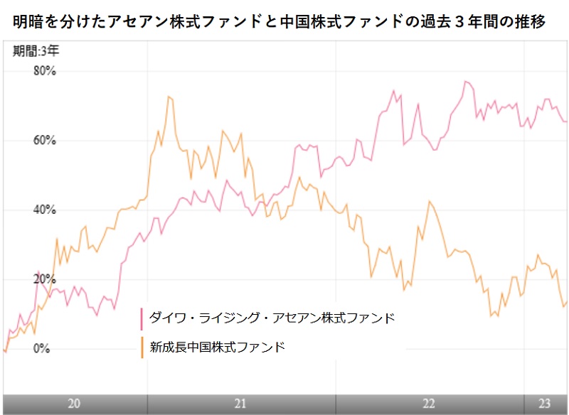 コロナ・ショックで露呈したグローバルサプライチェーンの脆弱性は、グローバル企業に「チャイナ・プラス・ワン」の必要性を強く認識させた。「世界の工場」としてグローバルサプライチェーンの中核に位置付けられていた中国への過度な依存がリスクとなることが明らかになったため、製造拠点をアセアン各国やインドに移そうという動きが広がっている。このような動きが、アセアン株式ファンドと中国株式ファンドの過去3年間の動きの明暗にクッキリと表れている。コロナ禍も一巡し、正常化へと向かい始めた中にあって、今後のアジア地域の成長の焦点はどこに移っていくのだろう? アジア圏にあって精力的に調査活動を実施しているイーストスプリング・インベストメンツは3月に「アジアのサプライチェーンの価値」と題したレポートを発表し、アセアン地域の成長への期待感は強いものの、「中国も終わったわけではない」と主張している。 アセアン加盟国(インドネシア、マレーシア、フィリピン、シンガポール、タイ、ブルネイ、ベトナム、ラオス、ミャンマー、カンボジア)企業の株式を主要投資対象とする「ダイワ・ライジング・アセアン株式ファンド」と、中国企業の株式を主要投資対象とする「新成長中国株式ファンド」のトータルリターンの推移を過去3年間で比較すると、「ダイワ・ライジング・アセアン株式ファンド」が右肩上がりで一貫して上昇していることに対し、「新成長中国株式ファンド」は2021年2月にピークをつけて、その後は下落するという明暗がクッキリと出たパフォーマンスになった。「ダイワ・ライジング・アセアン株式ファンド」の23年2月末時点でのトータルリターン1年は8.54%、3年(年率)は7.99%に対し、「新成長中国株式ファンド」は1年でマイナス9.21%、3年(年率)は2.55%という結果で、特に、過去1年間の格差が大きくなっている。中国は、直近まで「ゼロコロナ政策」に固執し、「ウィズ・コロナ」への対応が遅れたことが経済の回復タイミングの遅れに直接響いていることが影響していると考えられる。 アジアは、グローバル・バリューチェーンにおいて重要な役割を担っている。特に、中国は、「世界の工場」として整備されたインフラと接続性、そして、サプライヤーのネットワークの充実などによって他の国に勝る優位性を持っている。イーストスプリングは、「アジア各地で新たな製造拠点が生まれつつあるが、中国が世界の工場としての地位を失うことはないだろう」と見通している。それは、中国国内に大きな成長を遂げる消費市場があることも魅力になっている。さらに、「中国は、家電、航空宇宙、自動車などの最終製品に使用される部品・中間財など、より高度な機器や工業製品へと製造業のバリューチェーンの能力を高めている。テクノロジー、ビッグデータ、ロボット、人工知能といった分野への巨額投資が中国のバリューチェーンの底上げを促進している」と、中国の地位を評価している。 一方、世界の多国籍企業は製造拠点の特定国・地域への集中リスクを減らそうと、調達先を中国以外にも分散する「チャイナ・プラス・ワン」戦略を志向している。その恩恵を受けているのが、アセアンなどのアジアの国々だ。アセアンへの海外直接投資(FDI)は、2013年の1200億米ドルから2019年には1740億米ドルに伸び、2020年こそコロナ禍で低下したものの、2021年にはコロナ以前の2019年の過去最高水準に戻った。中でも製造業は2020年の190億米ドルから2021年は450億米ドルへと大きく伸びている。アセアン以外では、「メイク・イン・インディア」政策を推進しているインドで製造業へのFDIが2021−22年度に前年度比76%増の210億米ドルに達するなど好調だ。インドのモバイル端末生産は、アップルが2022年に「iPhone 14」の生産を開始したことが知られているが、国全体として過去5年間で生産量が4倍に成長している。 企業のサプライチェーンは時代とともに広範化・複雑化し、そのために管理上の可視性が低下するという課題に直面している。このため、2022年には物流に最新技術を活用する「スマートロジスティクス」による配送スピードの高速化がトレンドになるなど「クラウドを活用したデジタルトランスフォーメーション(DX)戦略への投資」が重要視されている。今後は、「先進的な『スマート工場』(ロボットやAIを活用した工場)において、急速に変化する顧客の嗜好に対応するためのリアルタイムの意思決定をサポートするため、正確なクラウドデータ収集を用いて物流全体をカバーするエンドツーエンドの可視性を実現する必要がある」と見通す。アジア各国企業には、これらの新しいニーズを満たす需要も増大することが期待される。 イーストスプリングは、「地域全体で拡大するサプライチェーンといったテーマを投資機会に活用することができる」とする。たとえば、マレーシアの電気・電子セクターは、半導体のサプライチェーンが発達しており、世界の半導