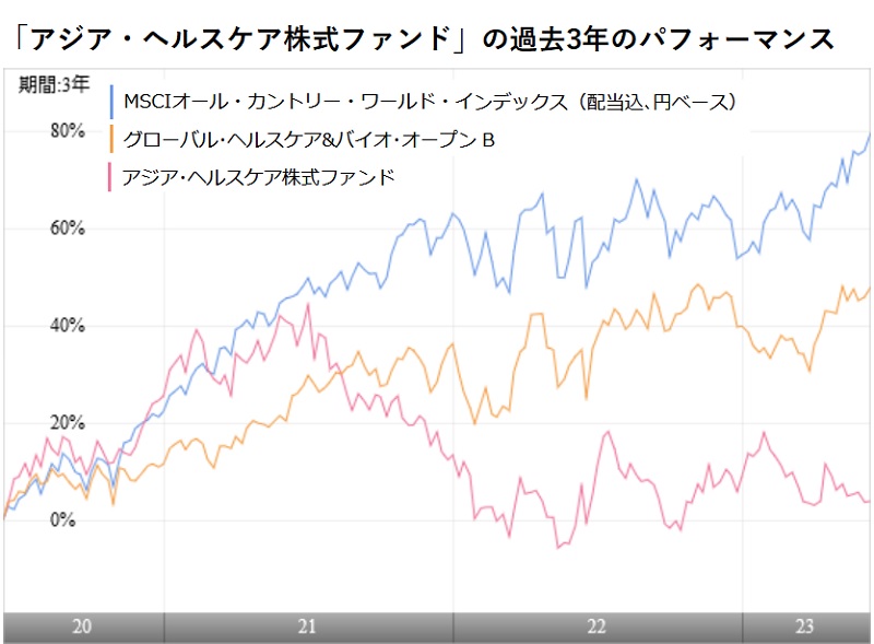 中長期での資産形成を考えた投資対象を選ぶ時、株式を対象としたファンドから選ぶのであれば、やはり、その企業が主たる事業フィールドにしている産業の将来性を確認したい。たとえば、今、大きな盛り上がりを見せている「AI(人工知能)」は、足元は生成AIの機能を一般にわかりやすく公開した「ChatGPT」の世界的な広がりによって一気に注目を高めたが、自動運転やドローンの発展などによってAI産業の成長期待は数年前から話題になってきた。同様にバイオやヘルスケアという分野は、新型コロナ・パンデミックを引き合いに出すまでもなく、世界人口の高齢化とともに、今後大きな成長が期待される分野だ。そして、ヘルスケアの分野で従来は注目度が低かったアジアが、今後の成長エリアとしてクローズアップされてきている。先行する米欧などの先進国と比較して依然として評価の低い「アジアのヘルスケア」に注目したい。 アジアのヘルスケア関連株式に投資する「アジア・ヘルスケア株式ファンド」の過去のパフォーマンスを振り返ると、5月末現在で、過去1年のトータルリターンが6.07%、過去3年(年率)が5.36%という水準だ。年率5%を超えるリターンを獲得できているので、それほど悪い成績とは言えないが、同期間に「全世界株式(MSCIオール・カントリー・ワールド・インデックス配当込み、円ベース)」が、1年で10.85%、3年(年率)で21.08%という成績であるため、見劣りしてしまう。また、グローバルでヘルスケア関連株式に投資する「グローバル・ヘルスケア&バイオ・オープンBコース」は、1年で6.53%、3年(年率)で10.83%であるため、ヘルスケア関連に投資するのであれば、特にアジアに限定することなく、グローバルに投資先を選んだ方が、良い運用成績を残せたということができる。 ただ、これからを展望すると、アジアのヘルスケア市場には大きな可能性があるといえそうだ。たとえば、日興アセットマネジメントが今年4月21日に発行したレポート「Asia’s healthcare opportunities」(翻訳版『アジアのヘルスケア分野の投資機会』が6月13日に公開)によると、「アジアのヘルスケア業界は、過去10年間におよぶ投資が実を結び始めている状況にある」という。これは、2000年代のテクノロジー業界と同様の状況にあるというのだ。 レポートによると、1990年代まで、医薬品製造に用いられる活性化学物質(医薬品原薬<API>)は、90%が欧米と日本で製造されていた。しかし、アジア各国は10年間にわたって医薬品産業へ投資し続け、むらのない高品質のAPIを製造する能力がたかまり、2020年には世界のAPIの60%以上をアジアで製造するまでになった。たとえば、中国は一部の主要API製造において大部分のシェアを占めるようになっている。さらに、ジェネリック医薬品の拡大によって、より多くの医薬品がアジアで製造されるようになった。たとえば、インドは世界最大のジェネリック医薬品輸出国であり、米国で消費される医薬品の3分の1、英国の4分の1はインドの製薬会社によって作られた医薬品だ。2021年にインドのモディ首相は、「インドは世界の薬局になった」と宣言した。 加えて、世界の医薬品支出の大部分を占めるバイオ医薬品の分野でも、先発バイオ医薬品と同様の有効性を示すことに成功したバイオ医薬品である「バイオシミラー(バイオ後続品)」が台頭してきた。一部のバイオ医薬品における特許保護の失効で、2015年以降アジアの複数のバイオシミラー企業が生産を認められ、先発バイオ医薬品と競争できるようになってきた。バイオの分野のジェネリック医薬品といえる。 このように、アジアのヘルスケア市場は、先端の技術というよりも、実用的なジェネリック医薬品やバイオシミラーによって、急速な立ち上がりが期待できるようになっている。アジアは、世界人口の60%を占めるほど人口が多く、また、世界のがん患者数の半分を占めるほどに、疾患の人数も多い。また、中国やインドネシア、タイを含むアジアの主要新興国において国民皆医療保険制度が導入され、所得水準の向上に合わせてより良い医療サービスへのニーズが高まっている。これは、アジア国内においても新しいイノベーションを生み出すきっかけにもなる。 コロナ・パンデミックにおいても、アジア各国は日本や中国と比較して、各国の感染対策で大きな混乱をみせるようなことはなかった。各国それぞれに医療体制が充実してきていることを感じさせる。そして、今後を展望すると、アジアにおけるヘルスケア産業の発展は、製造拠点としての発展とともに、域内産業としての成長も大いに期待できるといえるだろう。しかも、現在のところ、アジアのヘルスケア産業について株価の評価は、決して高いものではない。中長期の投資対象として検討の余地があるのではないだろうか。(グラフは、「アジア・ヘルスケア株式ファンド」の過去3年間のパフォーマンス推移)