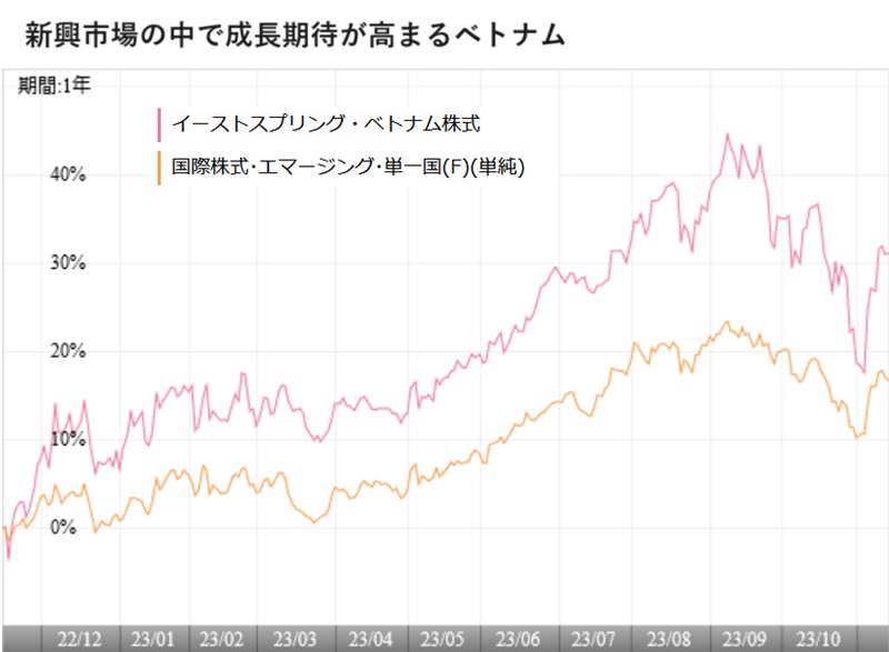 中長期的な成長市場としてインド株式市場が注目され、インド株インデックスファンド等への資金流入が目立っている。インドで注目されているのは、世界最大となった人口の年齢構成が若く、今後の経済成長に伴って多くの中間層が生まれるという期待だ。そのような若い人口が多く、中間層の拡大によって長期的な経済成長が期待される国としてベトナムがあげられる。人口が約1億人であり、14億人を超えるインドと比べると小さいが、若い労働力が子供や高齢者よりも多い「人口ボーナス」の時期を迎えていることは同じで、中国に一極集中していた生産設備を中国以外の国に移転させようという「チャイナ・プラス・ワン」による恩恵を受ける地域であることも似ている。ベトナム市場を現地調査しているイーストスプリング・インベストメンツ(ベトナム)のCEO兼ヘッド・オブ・インベストメントのNgo The Trieu氏は「ベトナムの中間所得層は現在、人口(9700万人)の13%を占め、2026年までに倍増することが予想されている」と、中間層の拡大によってベトナムの経済、そして、株式市場は力強く成長するとレポートしている。 Trieu氏は23年11月に発行したレポートで、「2012年から2022年にかけて、ベトナムの輸出成長率は年平均12%を記録し、これは世界の同成長率の4倍だった」と輸出主導で年平均6%の経済成長を遂げたベトナムの魅力を紹介。そこには、サムスン、グーグル、マイクロソフト、アップルなど世界的企業が近年、「チャイナ・プラス・ワン」戦略の一環としてサプライチェーンの一部をベトナムに移転されている動きがある。特に、2017年から2022年にかけて、米国の輸入に占める国・地域別シェアでベトナムのシェアは2%上昇し、これは1%以下の台湾、インドなどを大きく上回っている。アメリカは2023年9月に、中国、ロシア、日本、インド、韓国に続く6番目の「包括的戦略的パートナーシップ」を締結した。この動きを後押ししようとベトナムは大規模なインフラ投資を実施し、複数の自由貿易協定を結んでいる。「インフラに対する公共・民間の投資はGDPの5.6%に達し、これは東南アジアで最も高く、アジア全体では中国に次いで2番目に高い」。 また、ベトナム株式市場は、2013年12月末時点の時価総額452億ドルが、2023年9月15日時点では2612億ドルと5倍以上に成長し、上場銘柄数も788銘柄から1584銘柄へと倍増したことで業種の分散化も進んだ。この間の企業収益は年平均成長率(CAGR)で16.2%を記録した。現在、代表的な株価指数であるVN指数の12カ月先PER(株価収益率)は10倍と過去平均を2標準偏差近く下回っている。 さらに、ベトナムは2025年までに、少なくとも1つの世界的な株価指数において、自国市場のカテゴリーをこれまでの「フロンティア」から、「新興国市場」に昇格させることを目指している。この昇格によってパッシブ運用投資からだけでも10〜30億ドルの資金がベトナムに流入する可能性が指摘されている。現在、ベトナム政府は、ベトナム株式に外国人投資家が株式購入注文を出す前に十分な資金をベトナムに送金しなければならないという「プレ・ファンディング規制」や、外国人持ち株比率制限などがあり、外国投資家の参入を制限しているが、これらについて「課題に対処する方法を模索している」段階だ。2023年末を目途に新しい株式取引システムに移行する予定で、新たな商品、取引、決済ソリューションが導入される。 Trieu氏は「ベトナム株式市場は、同国の中間所得層の拡大から恩恵を受ける投資機会を投資家に提供する。同市場はまだ発展の初期段階にあるため、既に投資を開始している先発組の投資家は長期的に魅力的なリターンを享受できる可能性がある」とする。そして、未だに現地で包括的に企業調査する機関が少ないことから、ベトナムで企業んpファンダメンタルズ調査と分析に多くの時間とリソースを費やせば「アルファ(超過収益)獲得の機会が増える可能性がある」としている。 「イーストスプリング・ベトナム株式ファンド(愛称:+αベトナム)」は、ベトナムで設立、または、上場している企業、主にベトナムにおいて事業展開を行っている企業、収益の相当部分をベトナムで得ている企業、子会社または関連会社が収益の相当部分をベトナムで得ている企業の株式を主要投資対象としている。実質的な運用は、イーストスプリング・インベストメンツ(シンガポール)が行っている。2022年7月の設定で、2023年10月末現在の過去1年間のトータルリターンは5.56%になっている。この間、カテゴリー(国際株式・エマージング・単一国(為替ヘッジなし))の平均トータルリターンは4.40%でカテゴリーを上回る成績を残している。