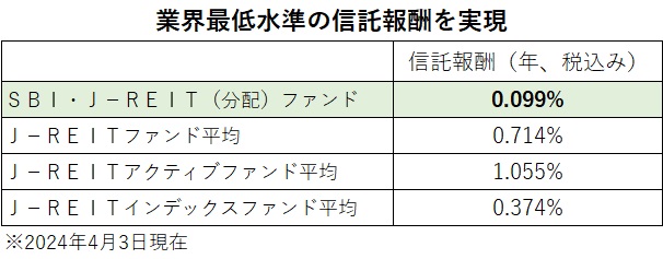 SBIアセットマネジメントは、J−REITに投資するファンドで最安コストの「SBI・J−REIT(分配)ファンド(年4回決算型)」(愛称:SBI日本シリーズ−J−REIT(分配))を5月8日に新規設定する。当初募集が4月19日に始まる。J−REIT市場は、史上最高値を更新した国内株式市場と比較して、大きく出遅れた資産として注目されている。その中から、配当利回りの高さに着目し、アクティブに投資対象を選定するファンドとして信託報酬率は年0.099%(税込み)と異例の低さを実現している。これは、J−REITを投資対象とした投資信託の中で、インデックスファンドも含めて最安の運用コストになっている。新NISAの成長投資枠の対象ファンドとして届け出がされる予定だという。非常に低い運用コストで、株式と比較して出遅れているJ−REITに、年4%を超える高い配当利回りで投資できるファンドとして注目される。 J−REIT(国内不動産投信)市場は、2020年3月の「コロナ・ショック」以降に、景気悪化懸念に加え、DX(デジタル・トランスフォーメーション)の進展などによるオフィス需要の減退などが嫌気されて人気が離散。その後、内外金利上昇による資金調達コストの上昇圧力などがかかったことによって、投資対象として敬遠される状況が続いている。例えば、「コロナ・ショック」前の2019年12月30日を100として、「J−REIT指数」、「日経平均株価」、「S&P500」を比較すると、2024年3月21日現在で、「日経平均株価」が173、「S&P500」が163のところ、「J−REIT指数」は84という水準であり、株価に比べて大幅に出遅れた水準にある。 J−REITの価格が低迷していることに伴って予想分配金利回りが上昇している。過去10年間の予想分配金利回りは4%割れの水準がほとんどだったが、2024年4月1日時点では、J−REIT指数ベースで予想分配金利回りが4.45%になっている。日経平均株価の配当利回りが株高によって4月には1.6%台になっていることと比較しても、J−REITの予想分配金利回りの高さは魅力的だ。 新設の「SBI・J−REIT(分配)ファンド(年4回決算型)」(愛称:SBI日本シリーズ−J−REIT(分配))は、J−REITへの投資にあたって、分配金利回りに着目し、高水準のインカムゲインと中長期的な値上がり益の獲得によるトータル・リターンの追求をめざすとしている。基本的にポートフォリオの平均分配金利回りがJ−REIT市場の平均を上回るように銘柄の選定、投資比率の決定を行うことをめざしている。利回りが高いことだけで銘柄を選んでしまうと、経営状況が厳しかったり、資産内容が悪化している銘柄なども含まれるが、同ファンドでは「中長期的な値上がり益の獲得」につながるだけの経営力等があるREITかどうかを見極めるアクティブファンドの目利き力を加えることによって、トータル・リターンの観点でポートフォリオを組むとしている。 一般的に個別銘柄の分析を行うアクティブファンドの運用コスト(信託報酬)は高い傾向があり、業界を代表するJ−REITのアクティブファンドは信託報酬率が年1.1%(税込み)など、1%前後になっている銘柄が多い。4月3日時点でJ−REITを主たる投資対象としている追加型投資信託の信託報酬率は、平均で年0.714%(税込み)。アクティブファンドの平均は年1.055%(税込み)、インデックスファンドの平均は年0.374%という水準だ。同ファンドの信託報酬率の年0.099%は、もっとも運用コストが低いインデックスファンドの信託報酬率の年0.11%をも下回る水準になっている。 一方、同ファンドは、高水準の予想分配金利回りに着目してポートフォリオを構築し、そこで得た分配金等を四半期(3カ月)ごとに分配することにしている。分配月は、2月・5月・8月・11月の年4回だ。 SBIアセットマネジメントには、他の投資資産を対象とした年4回決算型のファンドがシリーズとして揃っている。たとえば、国内株式で高配当の銘柄に投資する「SBI日本高配当株式(分配)ファンド(年4回決算型)」は、1月・4月・7月・10月に分配金が出る。そして、欧州の高配当株に投資する「SBI・欧州高配当株式(分配)ファンド(年4回決算型)」は、3月・6月・9月・12月に分配金が出る。 いずれのファンドも好調だ。「SBI日本高配当株式(分配)ファンド」は、設定来から4月2日までの累積リターンが18.47%とウエルスアドバイザーのカテゴリー平均16.98%を上回っている。日本株の好調も相まって、純資産残高は630億円を超えた。「SBI・欧州高配当株式(分配)ファンド」は設定来から4月2日までの累積リターンが3.28%とこちらもカテゴリー平均の3.16%を上回っている。純資産残高は87億円まで積み上がった。 新設される「SBI・J−REIT(分配)ファンド(年4回決算型)」と合わせて投資すれば、投資対象は「J−REIT」、「国内株式」、「欧州株式」という分散した投資ポートフォリオとなり、しかも、毎月分配金を受け取ることができるようになる。分配金を受け取ることは、資産の成長にはつながらないが、年金受給者の方々が、公的年金にプラスαのゆとりを得る目的で分配金を活用するような使い方ができる。NISA