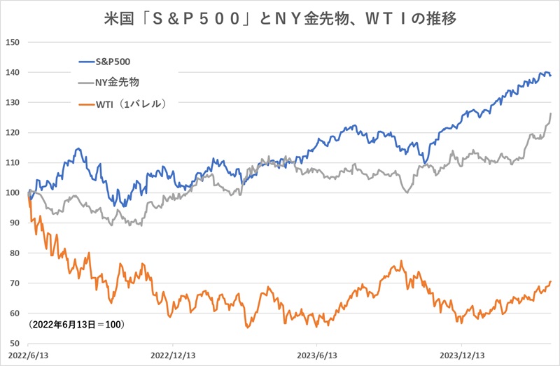 金(ゴールド)価格の上昇が止まらない。4月3日のNY金先物価格の終値は2315ドルで3月26日以来、6営業日連続で史上最高値を更新している。これは3月28日を高値に3営業日連続で最高値更新がならず、足踏みしている米国株式「S&P500」とは異なる値動きになっている。そもそも株式と金(ゴールド)の価格は、それぞれに異なる理由で動くもので、古くから分散投資の一環として、株式をコア資産として保有する場合は、資金の一部で金(ゴールド)を保有することによって株価の価格変動リスクを低減することができると推奨されてきた。近年、金(ゴールド)を投資対象とする投資信託の運用コストも大幅に低減している。改めて、不測の事態に備える金(ゴールド)への投資も検討してみたい。 生涯非課税投資枠が1800万円という新NISAのスタートによって、資産運用を始めたという人、また、資産運用を検討している人が少なくない。その場合、第一の選択肢になっているのが、内外の株価指数(株式インデックス)への連動をめざす「インデックスファンド」による積立投資だ。インデックスファンドについては、ここ数年の手数料引き下げ競争によって、運用コストである信託報酬率が年0.1%を下回るものも多く出てきている。低コストのインデックスファンドを選ぶことによって、日々ニュースにもなる株式インデックスの値動きと変わらないパフォーマンスを得ることができるようになった。 その新NISAで始める資産形成において、最も多くの人が選択している投資対象は「eMAXIS Slim 全世界株式(オール・カントリー)」ということができ、そして、最も使われている株式インデックスが「S&P500」ということになるだろう。「S&P500」に連動するインデックスファンドは、運用会社各社から信託報酬が0.1%以下の水準のファンドが出されており、人気が分散している。そして、運用成績ということにフォーカスすると「S&P500」が圧倒している。たとえば、「eMAXIS Slim 全世界株式(オール・カントリー)」と「eMAXIS Slim 米国株式(S&P500)」のトータルリターンを比較すると、過去1年間では35.21%対42.56%、過去3年(年率)では19.47%対24.94%、過去5年(年率)でも17.40%対21.44%と、「S&P500」が圧勝している。 この非常に優れたパフォーマンスを残している「S&P500」の値動きと「NY金先物」の動きを重ねてみると、その価格変動の仕方に関連性が薄いことがわかる。これは、株式と金(ゴールド)の値動きの要因が大きく異なることによる。株式の場合は、基本は企業業績(実態と今後の予測)の良し悪しが株価を動かしている。企業業績が伸びていて、今後も伸び率が拡大すると見通せる局面では株価は大きく上がり、反対に、企業業績の見通しが悪い時には株価値上がりの勢いが鈍り、企業業績が大幅な赤字など悪化する見通しの場合には株価は下げる。企業業績は好景気の時に伸びやすいため、景気が良い時ほど株価は上がりやすいという傾向がある。 この点、金(ゴールド)は景気の良し悪しで価格が動くものとは言えない。景気が悪く、中央銀行が金利を引き下げて景気浮揚策に打って出るような場合には、金利低下による通貨価値の下落を理由に金価格が上昇することもあるが、最も金価格が動きやすいのは「有事の金」といわれるような「安全資産としての金」への評価だ。戦争によって地域経済が大きなダメージを受けるような時に、金(ゴールド)の価格が急上昇する場合がある。また、「インフレに強い資産」としての金(ゴールド)の価値も根強い。かつては通貨として使われていた金(ゴールド)には普遍的な価値があると目され、インフレが高進して通貨(貨幣)の価値が毀損するような時に、金価格が上昇する傾向が強い。 「戦争」や「インフレ」、「好不況」などは、それぞれに何らかのつながりがあるものであり、その点で「株価」と「金価格」の動きに相関がゼロというわけではないのだが、それぞれの要因が価格に与えるスピードやインパクトの大小などが、株式と金(ゴールド)では異なるため、特に、株式を主たる投資対象として資産運用をする場合は、その価格下落リスクをヘッジするために金(ゴールド)の保有に価値があるとされる。 ただ、「株式」や「債券」、「REIT(不動産投資信託)」などは、配当や利息などのインカム収入が期待できるが、「金(ゴールド)」にはインカム収入がない。価格変動がない限り、保有しているだけでは収益を生まない資産だ。このため、「株式」などと比較すると金(ゴールド)の保有は一部にとどめたほうが良いとされる。 現在、金(ゴールド)を投資対象とする公募投資信託の中で、もっとも残高が大きいのは「三菱UFJ純金ファンド(愛称:ファインゴールド)」だ。過去1年間のトータルリターンは22.27%であり、株式インデックスファンドには見劣りするものの、しっかりとしたリターンは残している。メインの投資を株式インデックスファンドと位置付け、金(ゴールド)への投資は「ヘッジ目的」と考えるのであれば、その「ヘ