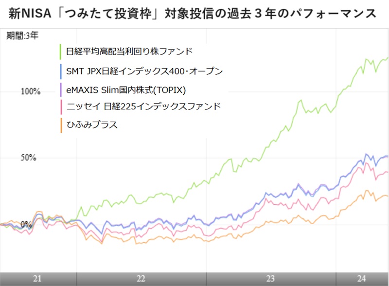 そして、インデックス投信の中では「JPX日経インデックス400」に連動する投信が一番成績が良かった。「ニッセイ JPX日経400インデックスファンド」の3年(年率)トータルリターンは16.04%で、「つみたて投資枠」対象投信の中で第4位の成績だった。