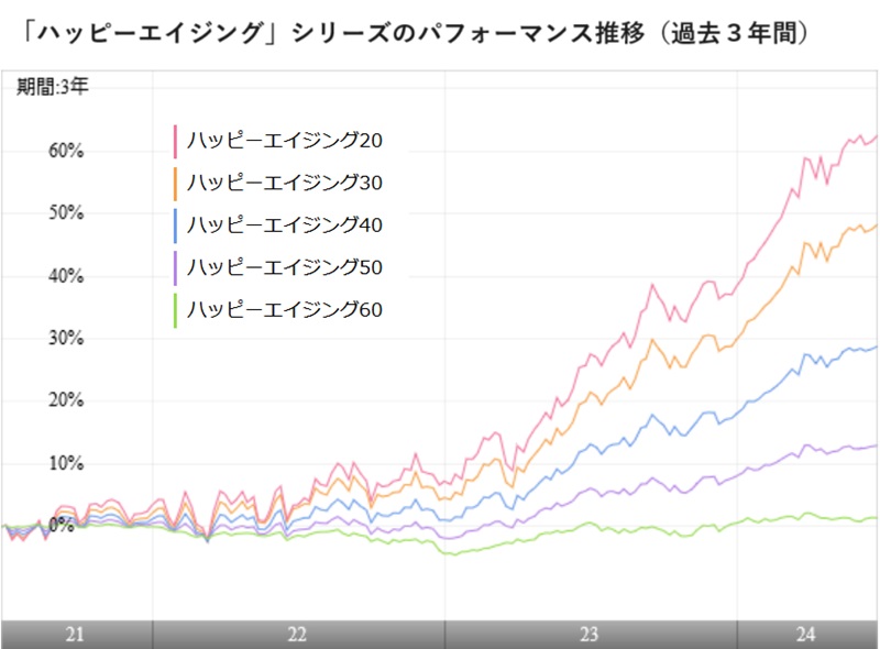 6月28日にドル円相場は、一時1ドル=161円台に乗せた。1986年12月以来、38年ぶりの円安・ドル高水準になる。非常に極端な円安になっていると感じられるが、日米の金利差を手掛かりとした円安相場に勢いがある。このため、投信市場では米国株式をはじめ海外の資産に投資するファンドのパフォーマンスの高さが際立っている。このような極端な動きは、いずれ修正される傾向にある。「行き過ぎた円安」は、どこかで是正に動くだろう。何か極端な動きがある場合は、その反動への備えも含めて投資資産の管理が重要になる。改めて、「分散投資」の重要性が意識されるところだ。 ここ数年間、特に、コロナ・パンデミックで世界経済が瞬間的にマヒした2020年3月以降は、DX(デジタル・トランスフォーメーション)とAI(人工知能)の成長を手掛かりにした米国株式を中心とした「株高」と、米欧の利上げとは一線を画してゼロ金利を維持し続けた日本円の下落が目立った「円安」が極端に進んだ。このため、資産運用の投資対象としては「米国『S&P500』に勝る投資対象はない」といえるような状況だった。さすがに、米国経済成長の息切れが意識され、インド経済の力強さなどが注目されたこともあって、「米国一辺倒の投資を見直すべき」との見方も台頭し、「S&P500」に偏っていた投資は、新興国も含む全世界株式「MSCIオール・カントリー・ワールド・インデックス」を投資対象とする動きに移ってきた。 さらに、昨今の極端な「円安」を前にすると、株式投資の地域分散の動きを一歩進めて、「海外一辺倒」の投資資産への見直しも検討した方が良いタイミングではないのだろうか。「S&P500」も「全世界株式(オール・カントリー)」も「海外株式」であることに変わりはない。この投資では、昨年から大きく値上がりした「国内株式」の値上がりの恩恵を取りこぼすことになった。今後、極端に進んだ円安が是正されるような動きになれば、「海外資産」は円高によって(日本人にとって)価値が目減りするということにもなりかねない。この為替変動へのリスクヘッジとして国内資産への投資比率を高める分散投資も検討しておきたい。 内外資産への分散投資を実現するバランス型ファンドの品ぞろえは多い。国内株式・国内債券・先進国株式・先進国債券・新興国株式・新興国債券・国内REIT・海外REITの8つの資産を対象とした「8資産分散」や、国内株式・国内債券・海外株式・海外債券・国内REIT・海外REITの「6資産分散」、あるいは、国内株式・国内債券・海外株式・海外債券の「4資産分散」など、対象資産の数にも選択肢があり、ここに「金(ゴールド)」などコモディティを加えるということもできる。 ただ、これらバランスファンドはここ数年はさっぱり人気がなかった。特に、2022年は株式も債券も同時に値下がりするバランスファンドにとって最悪の市場環境であり、「株式のパフォーマンスがこれほど好調な時に、わざわざ債券を加えてパフォーマンスを悪化させる必要はない」という考え方が強まっていたためだ。しかし、過去3年〜5年ではなく、過去10年〜20年という長期で考えると、必ずしも株式優位の投資環境が続いていたわけではない。 国内外の株式や債券に広く分散投資する「ハッピーエイジング」というバランスファンドのシリーズがある。内外株式への投資比率が90%の「ハッピーエイジング20」、同70%の「ハッピーエイジング30」、同50%の「ハッピーエイジング40」、同30%の「ハッピーエイジング50」、同10%の「ハッピーエイジング60」という5本のファンドでシリーズが構成されている。これは、20代、30代という若い時代はリスク資産である株式への投資比率を高くとることができ、50代、60代では株式への投資比率を抑える方が良いという年代ごとのリスク許容度を反映したポートフォリオ内容にしているためだ。 このシリーズのパフォーマンスを過去3年間で比較すると、株式の組み入れ比率の高い「ハッピーエイジング20」の成績が一番よく、「ハッピーエイジング60」の成績が最低になるということになる。ところが、より過去にさかのぼって運用成績を調べると、たとえば、2018年に米中貿易摩擦の激化で株価が低迷した年は、「ハッピーエイジング20」はマイナス15.52%で「ハッピーエイジング60」はマイナス1.74%だった。株式の組み入れ比率が低いほどマイナス幅が小さくなっている。株式優位な環境が数年にわたって続いたということであれば、反対に株式が債券に劣後するという環境が数年にわたって継続するということもあり得る。 また、「株式」か「債券」か? あるいは、「円高」か「円安」かなどと、今後の見通しによって「S&P500」を買うのか買わないのかというようなことをいちいち判断するのではなく、「市場の動向や変化にかかわりなく安定的な収益を獲得したい」というニーズにもバランス型ファンドは合致する。株式への投資比率が50%の「ハッピーエイジング40」であれば、今後も引き続